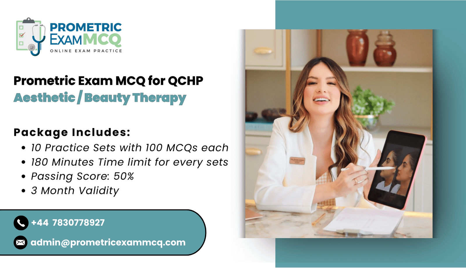 Aesthetician Beauty Therapist Prometric Exam MCQs consists of 10 Practice Exam Sets