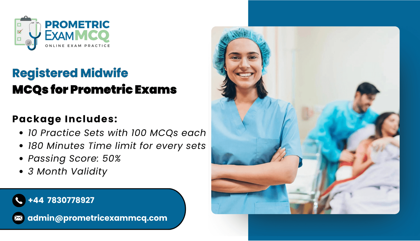 - Registered Midwife MCQs for Prometric Exams consists of 10 Practice Exam Sets
