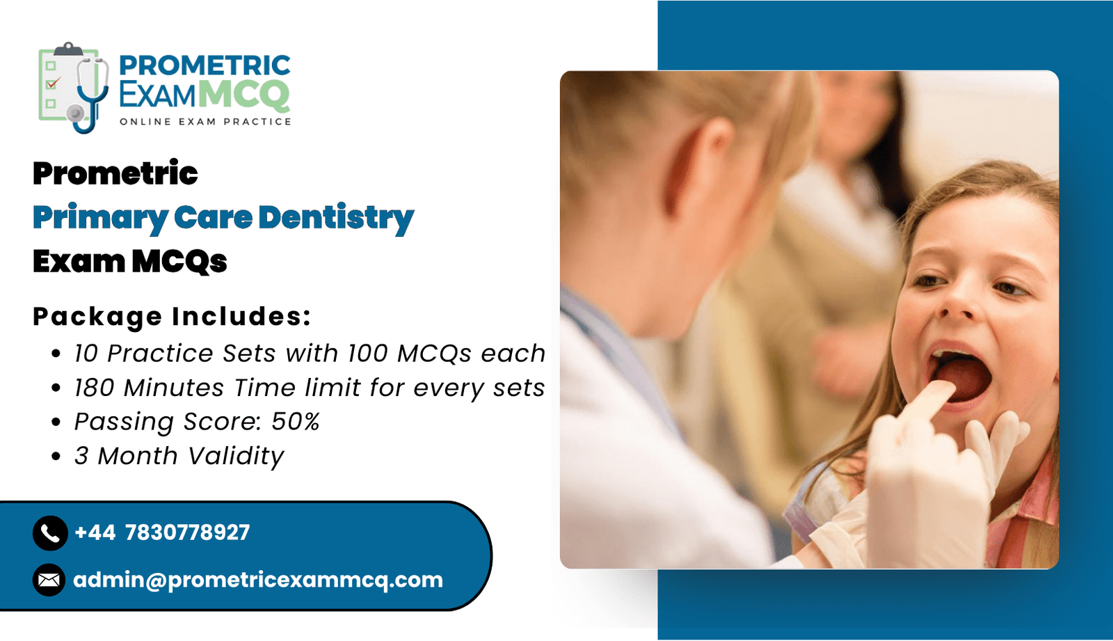 Multiple Choice Questions (MCQs) to prepare for Prometric Exam MCQ for Primary Care Dentistry