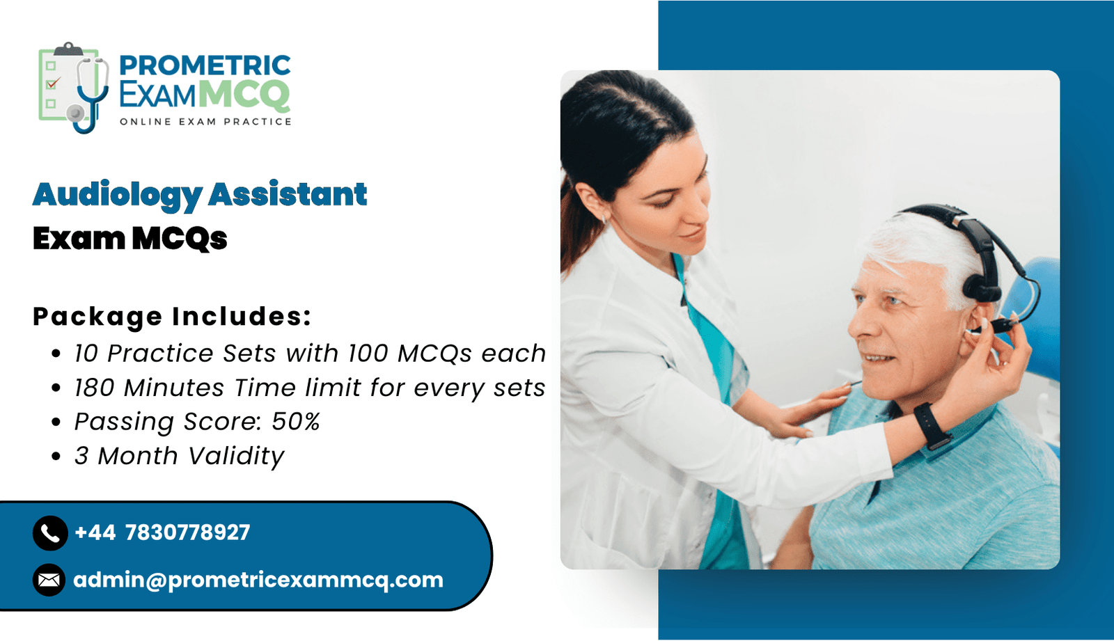 Audiology Assistant Prometric DHA MCQs, Audiology Assistant Pearson Vue HAAD MCQs, Audiology Assistant Pearson Vue DOH MCQs, Audiology Assistant Prometric DHCC MCQs, Audiology Assistant Prometric MOH MCQs, Audiology Assistant Prometric QCHP MCQs, Audiology Assistant Prometric NHRA MCQs, Audiology Assistant Prometric SCFHS MCQs, Audiology Assistant