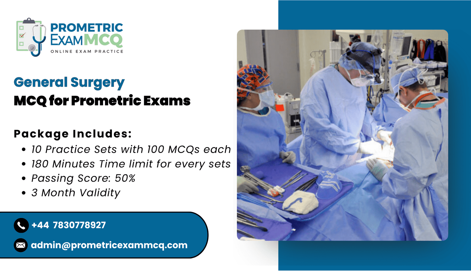 - General Surgery MCQ for Prometric Exams consists of 10 Practice Exam Sets